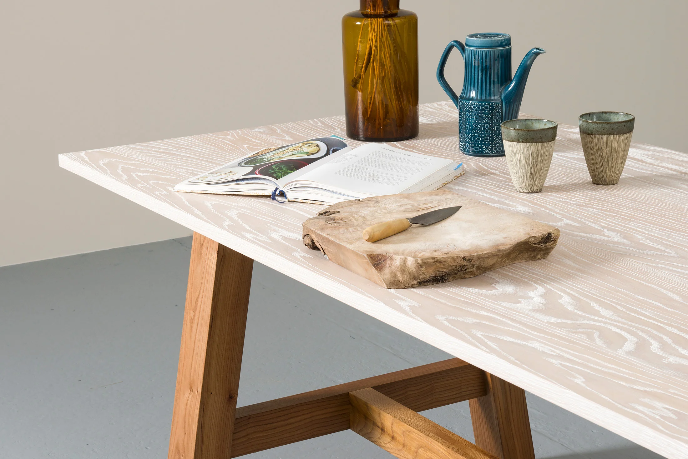 Table A is uncomplicated. Held together with sturdy joints and familiar fixings, it is simple to put together and take apart, to move to new spaces.
